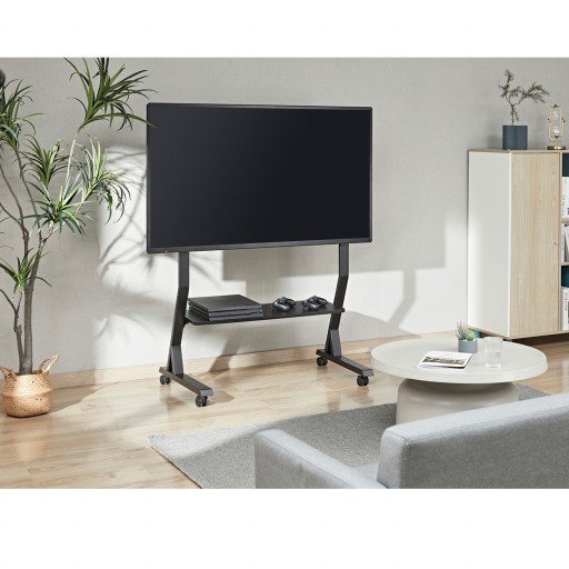 Wykonany ze stali, stojak jest nie tylko solidny, ale także trwały i odporny na uszkodzenia. System ukrywania kabli pomaga zachować porządek i estetykę wokół telewizora, eliminując nieestetyczne kable i przewody. Kółka ułatwiające przemieszczanie sprawiają, że stojak jest łatwy do przemieszczania, co pozwala na elastyczne dostosowanie jego położenia w pomieszczeniu.
