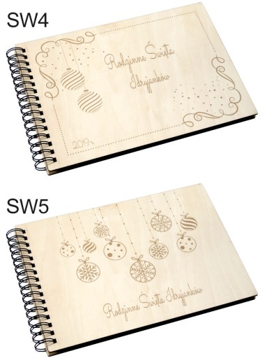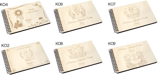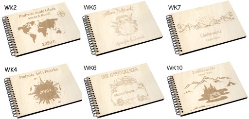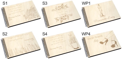 Drewniana okładka na której umieścimy jedną z grafik z Waszym tekstem za pomocą wysokiej jakości grawera laserowego dzięki czemu grafika nigdy się nie zamaże.