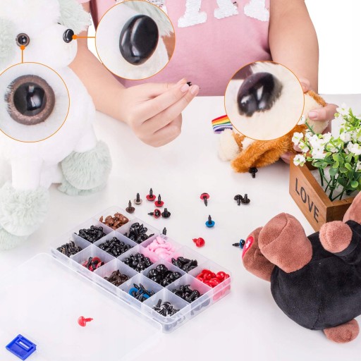 Zestaw bezpiecznych oczu i nosów znajduje szerokie zastosowanie w ręcznie robionych lalkach, projektach i rzemiośle. Jest idealny do stosowania przy tworzeniu wszelkiego rodzaju wypchanych stworzeń, takich jak pluszowe lalki, misie, oraz materiały ATR (arts and crafts) i wiele innych.