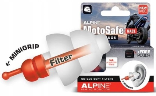 - MotoSafePro®: zawiera pełny zestaw zatyczek do uszu MotoSafe® Tour i Race MotoSafe®. Idealny do różnych zastosowań i samodzielnego wyboru poziomu tłumienia.