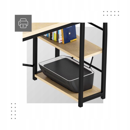 - Blat z wykończeniem o wyglądzie drewna i malowany proszkowo stelaż tworzą interesujący efekt, który doskonale prezentuje się w każdym biurze i pracowni. Biurko z regałem szczególnie dobrze pasuje do wnętrz industrialnych, vintage i loftowych.