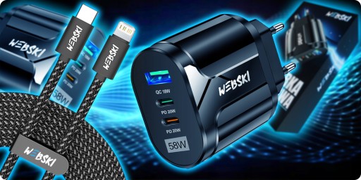 🔋 ŁADOWARKA SIECIOWA WEBSKI 58W - 2xUSB-C PD 20W + USB QC 18W 🔋