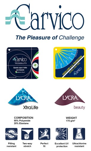 Tkanina Carvico to rodzaj syntetycznej tkaniny używanej głównie w produkcji odzieży sportowej, plażowej i aktywnej. Carvico to włoska firma specjalizująca się w produkcji wysokiej jakości tkanin.