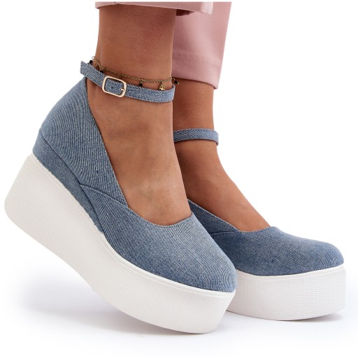 Damskie Jeansowe Espadryle Na Koturnie Niebieskie Malla - rozmiar 38