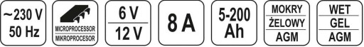 Prostownik elektroniczny 6/12V 8A 5-200 Ah