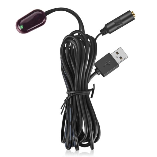 Aby wygodnie używać przekaźnika pilota, należy przykleić odbiornik (taśma dołączona do urządzenia) w konfortowym miejscu. Nadajnik IR należy przykleić w taki sposób, aby przykrywały "okienko" podczerwieni na urządzeniu. Umieszczenie dwóch nadajników podczerwieni na tym samym komponencie nie poprawi wydajności, ponieważ jeden nadajnik steruje urządzeniem gospodarstwa domowego i nie ingeruje w siebie nawzajem. Urządzenie zasilane za pomocą USB.