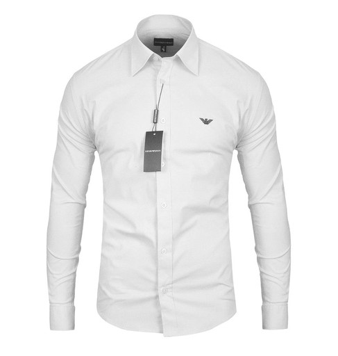РУБАШКА EMPORIO ARMANI УЗКОГО КРОЯ, ГЛАДКАЯ, БЕЛАЯ