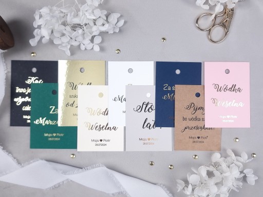- Tekst na zawieszkach jest uszlachetniony złotą folią