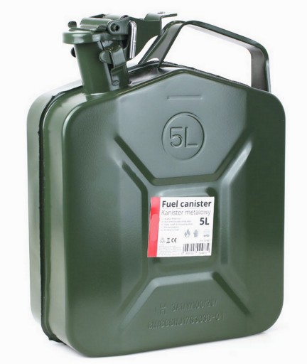 Metalowy kanister przeznaczony do przewożenia i przechowywania różnego rodzaju cieczy. Wykonany ze stalowej blachy, dwustronnie malowany proszkowo, dzięki czemu charakteryzuje się wysoką odpornością na korozję oraz warunki atmosferyczne. Wyposażony jest w uszczelkę umieszczoną pod korkiem oraz ocynkowaną zawleczkę w kształcie "L" jak dodatkowe zabezpieczenie. Kanister posiada certyfikację UN co pozwala na bezpieczne przechowywanie wszelkich paliw w tym benzynę i olej napędowy.