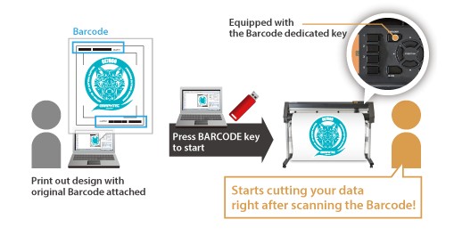 - Barcode funkcja umożliwiająca automatyczną identyfikację projektu zapisanego w komputerze lub na dysku USB (pendrive) na podstawie odczytu wydrukowanego kodu kreskowego