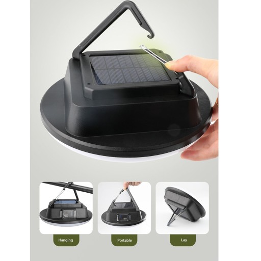 5. Możliwość ładowania: Oprócz oświetlenia, ta lampa ma również wbudowaną funkcję ładowania, umożliwiającą ładowanie innych urządzeń, takich jak telefony, tablety i inne. Pomaga utrzymać zasilanie urządzeń elektronicznych, dzięki czemu korzystanie z zajęć na świeżym powietrzu jest wygodniejsze.