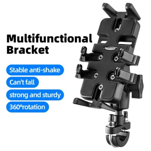 - Ten uchwyt na telefon jest wyposażony w stojak, który można zamontować na rowerze.