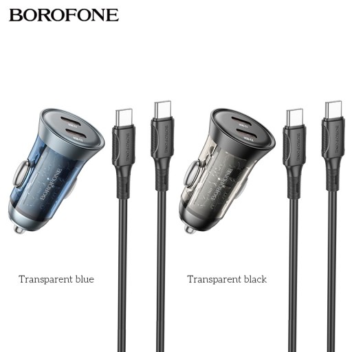 BOROFONE BZ26B Discovery to szybka ładowarka samochodowa z dwoma gniazdami wyjściowymi, jednym USB Type-C / Typu C / Typ C o mocy maksymalnej 25W i drugim gniazdem również USB-C o mocy maksymalnej 20W, wspierająca takie standardy szybkiego ładowania jak QC3.0 / QC2.0 / Huawei FCP, Apple PD20W czy Samsung AFC. Zestaw zawiera dodatkowo kabel Power Delivery / PD ze złączem USB Type-C / Typ C o długości 1 M / 100 CM.