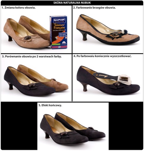 - jeżeli farbowane jest obuwie, przed przystąpieniem do pracy warto je wypchać, np gazetami lub włożyć do środka prawidła, co umożliwi dokładniejsze odtłuszczenie oraz nakładanie pigmentu