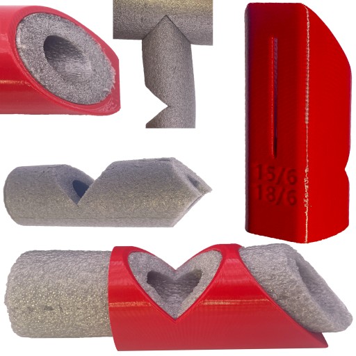 Szablon jest przeznaczony do docinania otulin o średnicy 15 i 18 mm oraz grubości 6 mm. Posiada on specjalne oznaczenia, które ułatwiają docinanie otulin pod kątem 90° i 45°, co zapewnia łatwość łączenia otulin.