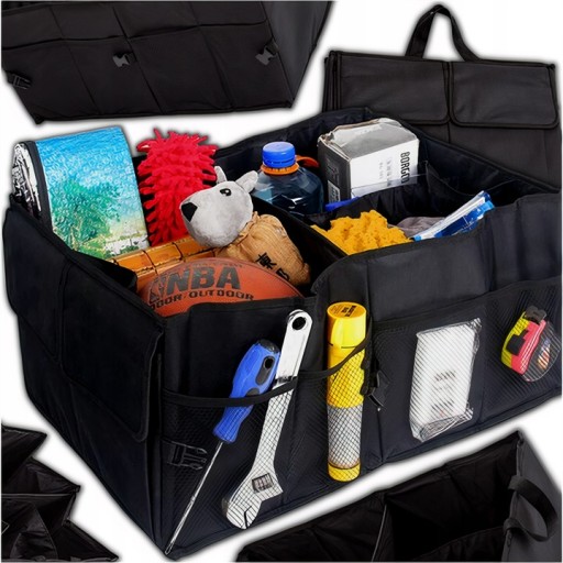 ✔️ Organizer jest wyposażony w usztywnione ścianki, które utrzymują przedmioty na swoim miejscu, nawet podczas jazdy. Po złożeniu zajmuje niewielką przestrzeń, co czyni go niezwykle praktycznym i łatwym do przechowywania w bagażniku samochodu lub w domu.