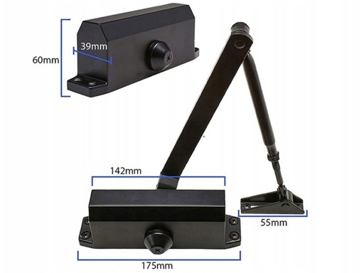 Produkt jest łatwy w montażu – zamocujesz go przy pomocy podstawowych narzędzi. Element został wykonany z aluminium. Dzięki temu jest wytrzymały, a materiał zapobiega odkształcaniu się ramienia samozamykacza – drzwi będą sprawnie się poruszać, nawet podczas gwałtownych ruchów.
