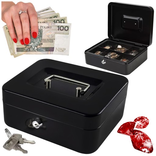 Metalowa kasetka, sprawdza się gdy chcemy przechować pieniądze lub inne wartościowe przedmioty takie jak np: biżuteria czy dokumenty.