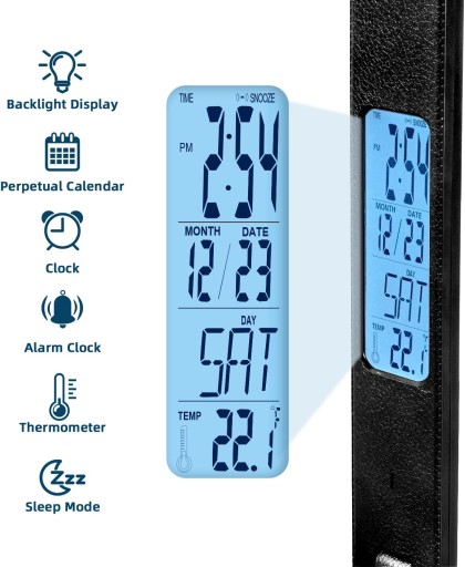 W lampie wbudowany jest wyświetlacz z godziną, temperaturą datą i możliwością ustawienia alarmu