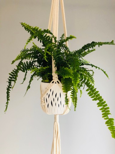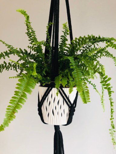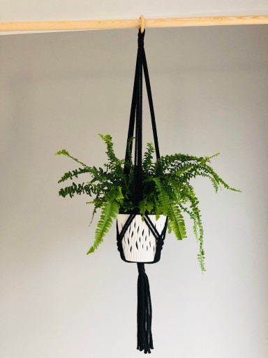 Kwietnik wiszący, pleciony w stylu BOHO.