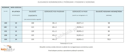 Tabela wymiarów znajduje się w galerii zdjęć.