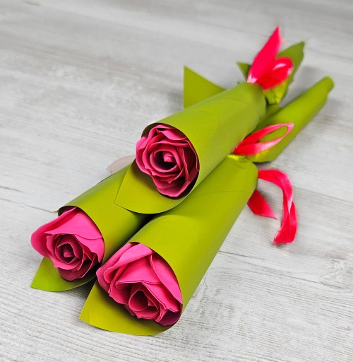 Cena dotyczy jednej sztuki. Oferowana róża ma kolor FUKSJOWY, owinięta w ZIELONY folio-papier. Zapraszam do zapoznania się z pozostałymi wariantami kolorystycznymi na pozostałych aukcjach. Róża pełni funkcję dekoracyjną