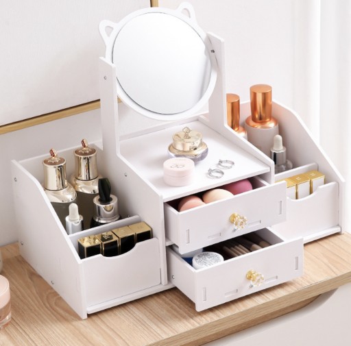 ✅ Funkcjonalność: Posiada lusterko, szufladki oraz przegródki ułatwiające porządkowanie kosmetyków.