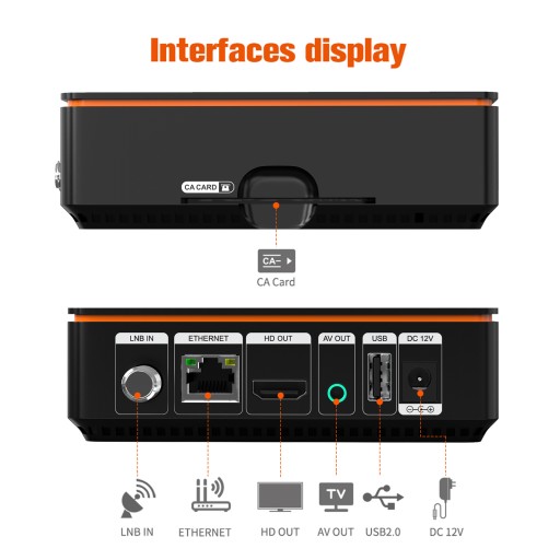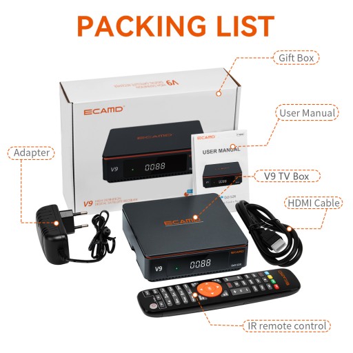 Odbiornik satelitarny ECAMD V9 Prime DVB-S/S2/S2X ACM/Multi-stream/T2-MI HEVC main10, GTShare APK Wbudowany 2.4G WIFI