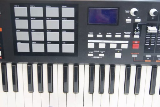 AKAI Professional MPK61 - to profesjonalna 61-klawiszowa klawiatura sterująca MIDI od japońskiej marki AKAI Professional. Klawiatura sterująca wyposażona jest w 16 padów MPC czułych na siłę uderzenia i docisku. Klawisze są pół ważone. Oprócz tego ma 24 programowalne kontrolery Q-Link z linii MPC.