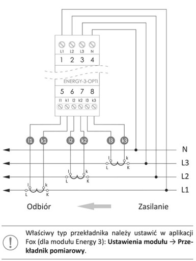 FOX - Monitor licznik energii elektrycznej 3-fazowy - Energy-3-OPTI-200