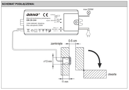 Выключатель однополюсный бесконтактный IP20 250Вт OR-CR-244