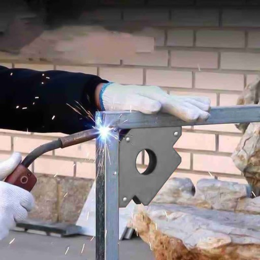 Kątownik magnetyczny wykonany z blachy stalowej oraz silnych magnesów ferrytowych. Umożliwia precyzyjne łączenie materiałów pod następującymi kątami: 45°, 90° i 135°. Udźwig magnesu ok. 34 kg. Powierzchnia obudowy magnesu lakierowana proszkowo. Przeznaczony do czasowego łączenia metalowych elementów podczas spawania, nawiercania, lakierowania, czynności wymagających używania obu rąk. Stosowanie kątownika magnetycznego pozwala na swobodne operowanie obiema rękami i wstępne montowanie łączonych, metalowych elementów bez pomocy dodatkowej osoby.
