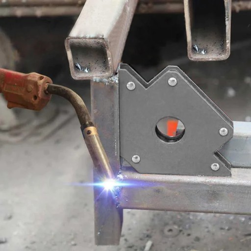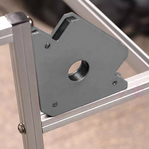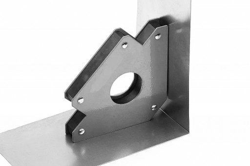 Kątownik magnetyczny wykonany z blachy stalowej oraz silnych magnesów ferrytowych. Umożliwia precyzyjne łączenie materiałów pod następującymi kątami: 45°, 90° i 135°. Udźwig magnesu ok. 23 kg. Powierzchnia obudowy magnesu lakierowana proszkowo. Przeznaczony do czasowego łączenia metalowych elementów podczas spawania, nawiercania, lakierowania, czynności wymagających używania obu rąk. Stosowanie kątownika magnetycznego pozwala na swobodne operowanie obiema rękami i wstępne montowanie łączonych, metalowych elementów bez pomocy dodatkowej osoby.