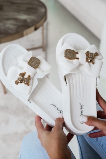 ШЛЕПАНКИ НА ПЛАТФОРМЕ С МИШКОЙ ТЕДДИ, БЕЛЫЕ 38