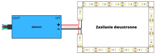 Ten odcinek wymaga zasilenia dwustronnego czyli początek i koniec taśmy należy wpiąć do zasilacza. W galerii zdjęć umieszczone są specjalne grafiki, które pokazują jak to powinno wyglądać.