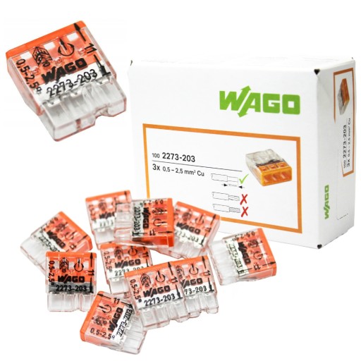 Быстроразъемный разъем WAGO 3 для кабелей твердый провод. 10 шт