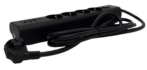 УДЛИНИТЕЛЬ ПИТАНИЯ 4 РОЗЕТКИ 3 м 4 зарядных устройства USB 3 светодиода 1,5 мм²