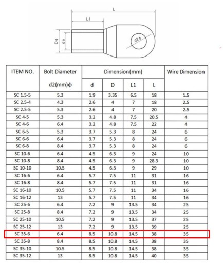 - Przekrój przewodu: 35mm2