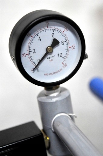 Manometr ułatwia kontrolę ciśnienia w zbiorniku zwiększając bezpieczeństwo w miejscu pracy.