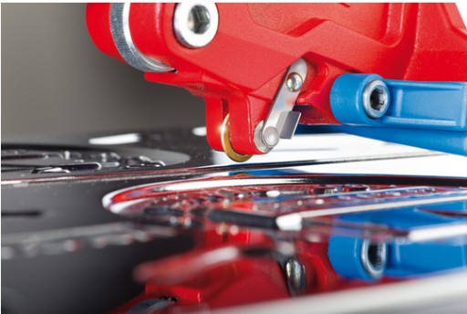 - Podczas cięcia wykorzystywany jest ten sam element tnący zarówno przy wykonywaniu tradycyjnych cięć pod kątem 90° jak i przy cięciach pod innymi kątami – co oznacza, że można wykonywać precyzyjne cięcia, zarówno proste ja i ukośne oraz układać kafelkowe mozaiki.