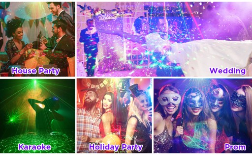 New Upgraded 3-IN-1 Nebula & Laser & LED pretty bright party light, equipped with unique polar lighting effect, a total of 60 combinations patterns, 7 colors LED backgrounds (red, green, blue, red & green, red & blue, blue & green, red & green & blue), and 2 beam combinations(red, green), creating stunning vivid stage lighting effects with high-quality laser image and RGB strobe lights.
