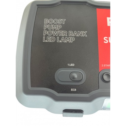 Dodatkowo urządzenie SUPER BOOST posiada aż 5 funkcji: rozruch silnika, pompowanie kół, lampę serwisową, POWER BANK oraz woltomierz do badania napięcia w akumulatorze.