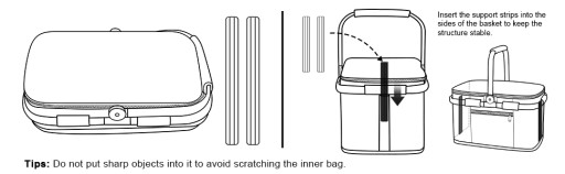 Pręty podporowe po bokach torby chłodzącej zapewniają, że kosz pozostaje stabilny i nie łamie się.