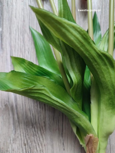 Bukiet z pojedynczych tulipanów silikonowych - jak żywe. W bukiecie tulipany w różnym stopniu rozkwitu, a liście w różnych odcieniach zielonego co nadaje im jeszcze bardziej naturalnego wyglądu.