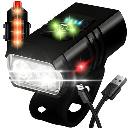 LAMPKA ROWEROWA LED NA ROWER KIEROWNICĘ AKUMULATOROWA MOCNA USB + TYŁ TYLNA