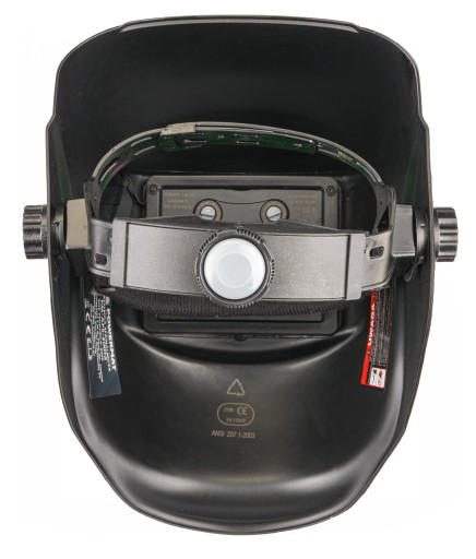 Przyłbica zasilana jest bateriami, które ładują się podczas pracy za pomocą ogniwa fotowoltaicznego (baterie nie wymagają wymiany), oraz baterią CR2032.