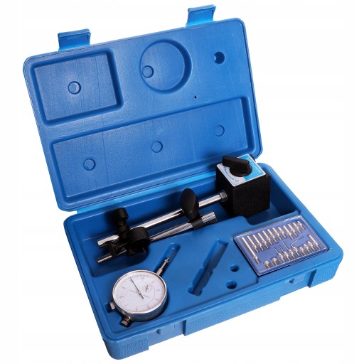 Uniwersalne narzędzie do przemysłu samochodowego i inżynieryjnego. Punkt styku wykrywa najmniejsze odchylenie zarejestrowane na czujniku zegarowym. Statyw przegubowy z magnetyczną podstawą umożliwia lepsze dopasowanie i większą dokładność. Przyrząd może być wykorzystywany do pomiarów m.in.: tarcz hamulcowych, wałów, kół pasowych, piast.