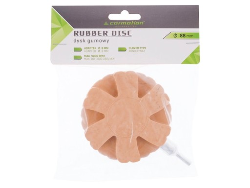 Usuwa pozostałości kleju, folii, naklejek czy farby. Gumowy materiał sprawia, że używanie dysku nie zostawia żadnych smug na elementach i nie narusza czyszczonej powierzchni.