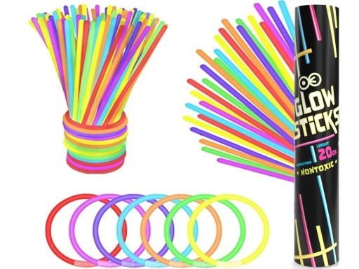 ŚWIECĄCE BRANSOLETKI FLUORESCENCYJNE OPASKI ŚWIATŁO CHEMICZNE 100 PAŁECZKI