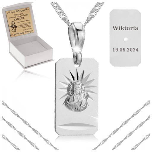 ➡️ SREBRNY ŁAŃCUSZEK + MEDALIK PASYJKA MATKA BOSKA 925 KOMUNIA CHRZEST GRAWER